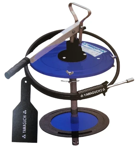 Bomba manual para grasa, tapa en acero, adaptable en balde de 18/20 kg, valvula en acero, filtro (patentado en Brasil), manguera con trama de acero para alta presión, mango, extensión rigida, acoplador y exclusiva espatula para grasa.